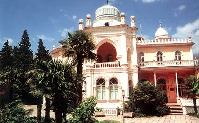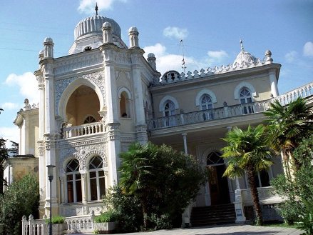 The monument of architecture of beginnings of XX century - ex-palace of Bukhara's emir in Yalta is erected in 1907-1911. The author of project Tarasov used the plastic methods and decorative elements of moslem architecture of countries of Northern Africa. The two-floor building is characterizing with the asymmetric composition, combination of rectangular, faceted and half-round volumes, porticos and terraces. The light carving of columns with refined capitals, balustrades, frames of horseshoe-shaped windows and cogged parapet over cornice looks well dressed on background of whitestone walls.