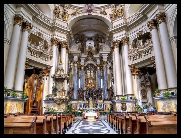 Dominican cathedral is built of stone and has the form of the elongated cross with the central part in the form of an oval. The altar is made in the form of rectangle, and the top of cathedral is decorated with dome, supporting 8 pairs of twin columns. The pediment has amazing sculptures, made at different angles. The architecture of the church was influenced by the churches of Rome, Vienna and Bologna.