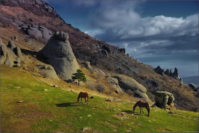Demerdzhi (or Blacksmith Mountain) is one of the most attractive and mysterious mountains of the Main Ridge, one of Crimean natural wonders. The plateau is extremely popular among Ukrainian and foreign tourists. For most of them the best way to get Funa fortress and The Valley of Ghosts at the foot of the Demerdzhi mountain is on horseback. Many tour-agency has such excursions in their agenda. Sometimes this place is also called Demerji-Yaila (Blacksmith Pasture).