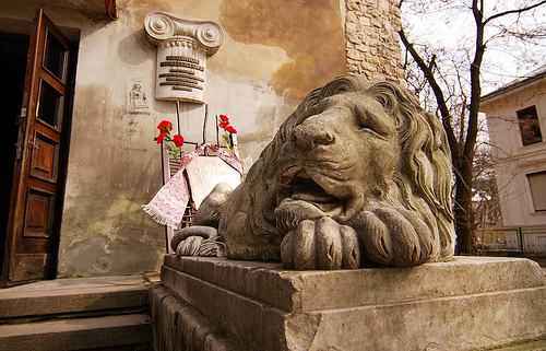 In 1954, the Powder Tower was restored. Five years later, in 1959, there appeared adorning above the entrance to the tower - figures of sleeping lions, and the very tower became the House of Architects in Lviv. In the days of the Soviet Union the plaster was removed from the walls of the building and there was discovered the original laying, making the building more valuable monument of architecture.
