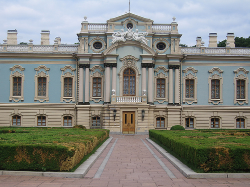 There is only one edifice in Kyiv which can answer a classical description of a palace: «a very large, richly decorated house, especially one which is, or used to be, the home of a royalty or president» (Collins Dictionary) and which dates to the «time of wide proliferation of palaces», that is, to the 18th century. The palace is called Mariyinsky. It is situated in an old part of town, called Pechersk, on top of a hill overlooking the mighty Dnipro River, surrounded by parks.