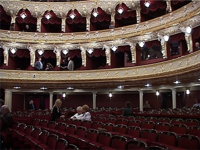 But the most beautiful part of the building is the auditorium. Similar to the interior of the theatre, the hall corresponds to the slogan: “Golden content for the gold form”. It is created in the style of Louis 16 - "rococo". Everything inside is created in harmony with each other: dome, columns, arches, sculptures, reliefs, candles and candlesticks, gilding, which is very nice combined with white, beige and warm cream-colored walls and ceilings. On the ceiling there are paintings - scenes from famous works of Shakespeare. And the huge luxurious crystal chandelier seems to tower over everything, weighing about 2 and half tons. The seats and boxes are covered with dark red velvet; mirrors are in gilt frames. In combination with the beautiful music all this is just a delight.