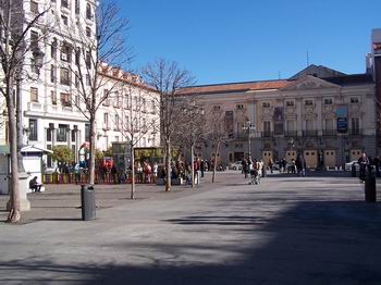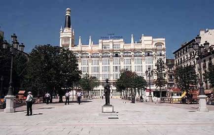 Teatro Español, the oldest theater in Madrid, is located on the plaza's east side. It was built in seventeenth century and then had the name Corral del Príncipe. On the west side of the plaza, a luxury hotel (now ME Madrid Reina Victoria) was built in the early nineteenth century. The hotel earned fame for being the favorite among the most popular bullfighters. For example, the regular guest Manolete always reserved room number 220 in superstition. The plaza is a popular meeting point in Madrid.