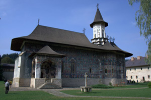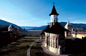 A wooden glazed gallery was built on the north wall during the 19th century.The slender wooden turret has the date 1867 carved on it.The existing monastic buildings abut the east wall. The central part is original, and houses, besides the nuns’ cells, a museum with embroideries, manuscripts, religious objects and icons. The Church of the Resurrection, although still built on the model of the classic Moldavian church, shows the first new architectural tendencies.