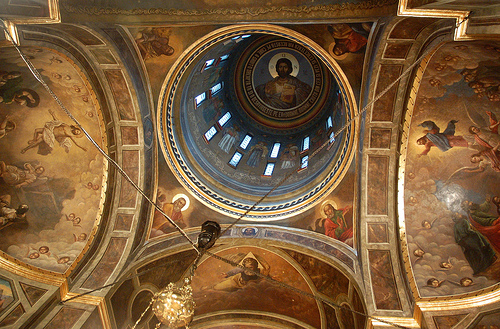 In the church, on the left hand side of the portal, facing the apse, there are murals of the church's founders (whose tombstone is within the church) and his wife, on the right hand side of the portal are to be seen ruling prince and his wife. The altar screen has wrought carvings covered with golden small leaf, the iconostasis is decorated with symbols taken from the Old Testament, whereas the apse holds original frescoes dating back to the 16th century. St. Antony's miracle working icon holds place of pride among the large silver icons of the church. It draws together many people, especially on Tuesday mornings, when the church often becomes too narrow to hold them all. Antony is a popular, benevolent saint, who, seemingly, has never failed to make a believer's wish come true.