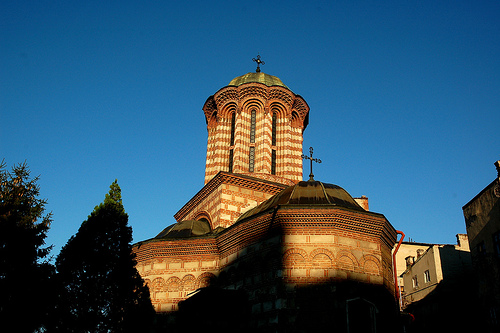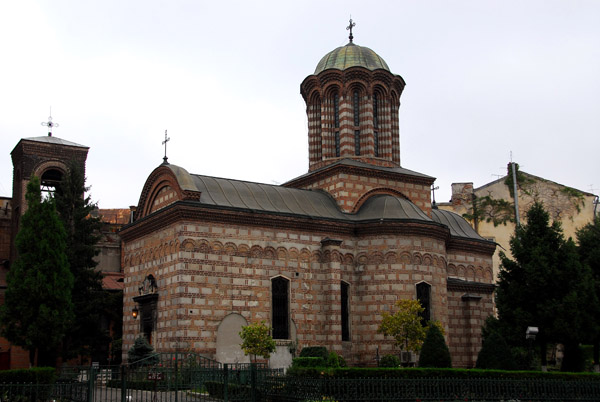Built on the place of a former wooden church which burnt up, restored after another fire in 1847, and over again in 1934, by the Commission of Historical Monuments, the church was conceived in the Wallachian architectural style of the 16th century it singles out by its harmony and balance of proportions. It has got a three-cusped design, it is 25m long and 8m wide on the outwards; its narthex is covered by a semicircular vault, and its nave has a belfry. The decoration of its façades is made of face brick stripes alternating with plaster stripes. At cornices, a series of small decorated niches and buttreses which support the outer walls remind one of the Moldavian style of architecture, a fact which may be associated with the influence exerted by Lady Chiajna, Mircea Ciobanul's wife and daughter to Petru Rares. The exterior decoration is made of brick stripes alternating with plaster stripes. The church was restored after a fire in 1847 and then again between the years of 1928 - 1938 by the Commission of Historical Monuments, which tried to bring the church to its original appearance. This church was the coronation place of Wallachia's ruling princes for almost three centuries (from the second half of the 16th century to the first half of the 19th century). The beautiful carved door was added in the early 18th century by Prince Stefan Cantacuzino. The interior has been blackened with time but you can still admire the beautiful frescoes, some dating from the 16th century.