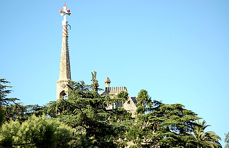 In his reworking of the old structure, Gaudi took advantage of the few remaining elements of the original residence: the battlements, fragments of walls, and the patio. This is why his creation evokes immediate association with a royal fortress rising tall in stone and brick. The fabulous pointed tower, unadorned iron gate and parapets make Bellesguard look like a genuine relic from the Medieval Ages.Visionary mosaics created by Domènec Sugrañes i Gras constitute an additional fantastic touch. In contrast to the facade, the interior of Bellesguard is light and spacious, a true Art Nouveau villa with walls and pillars of white, carefully formed plaster.