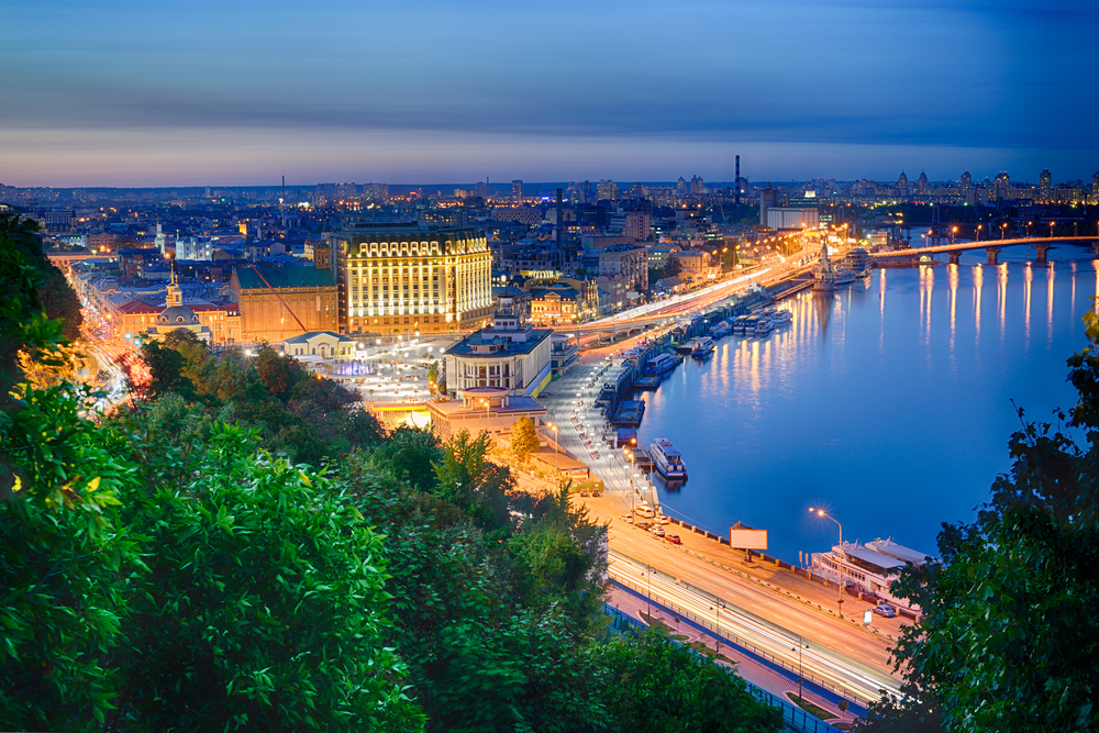 Kyiv (as it is called in Ukrainian) is the capital (and largest city) of Ukraine with 3 million inhabitants and sits on the banks of the Dnipro River.